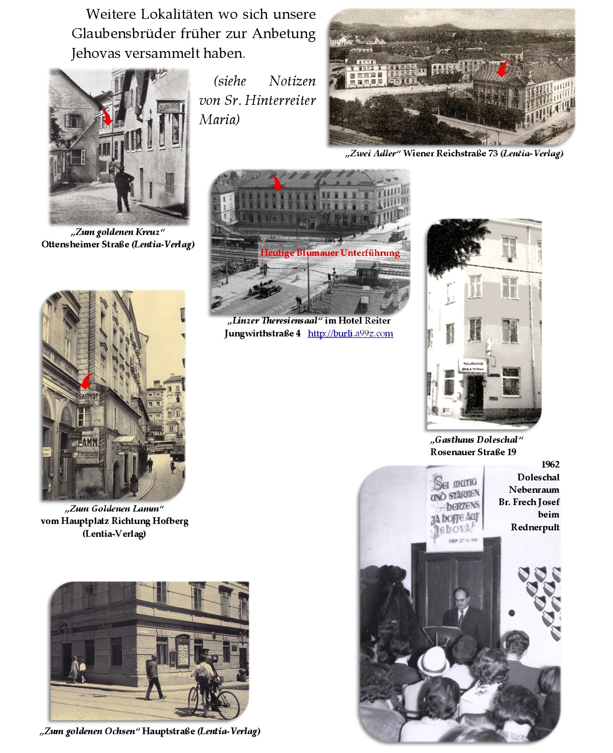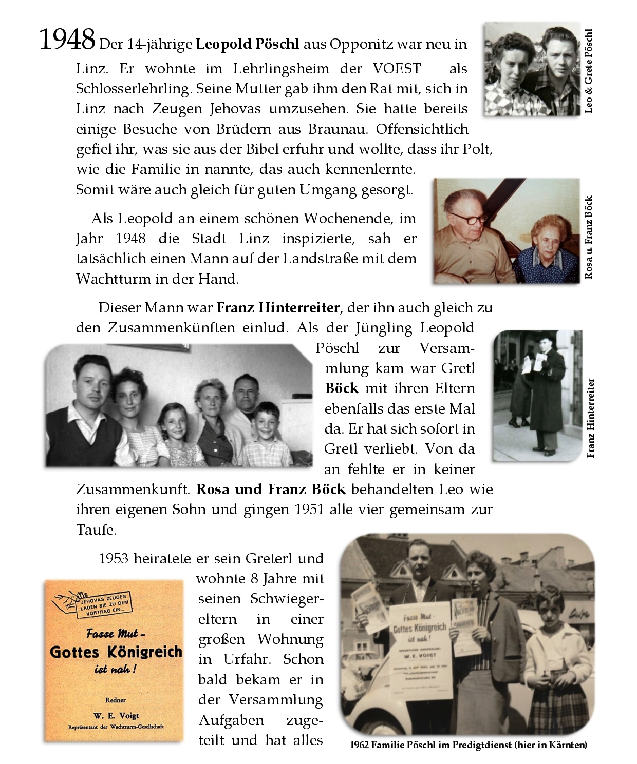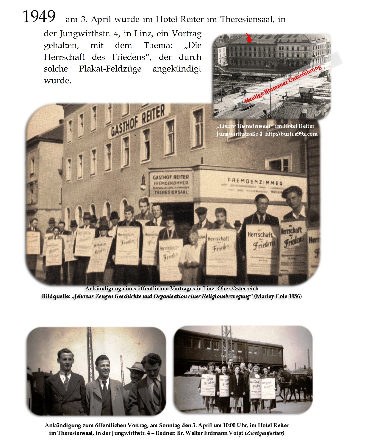 Überblick 1945-1949 Familien und besondere Ereignisse: Schuster, Filipp, Tauber, Hinterreiter, Mühleder, Staufer, Gesellschafts-Gründung, Erstes-Abendmahl-Linz, 1948 Bethel, Dienst-Gruppe-Bahnhof-1948, Liska, Pöschl, Gründung-Versammlung-Linz, Vortrag-Hotel-Reiter, Radhuber,