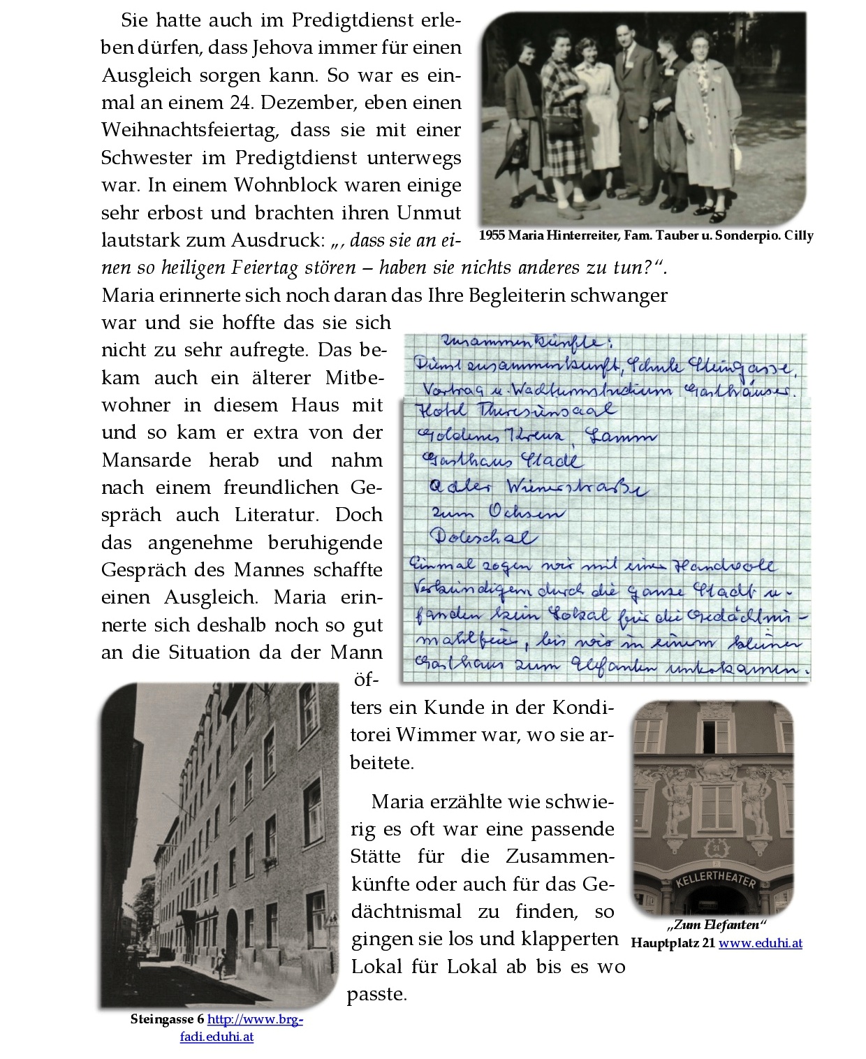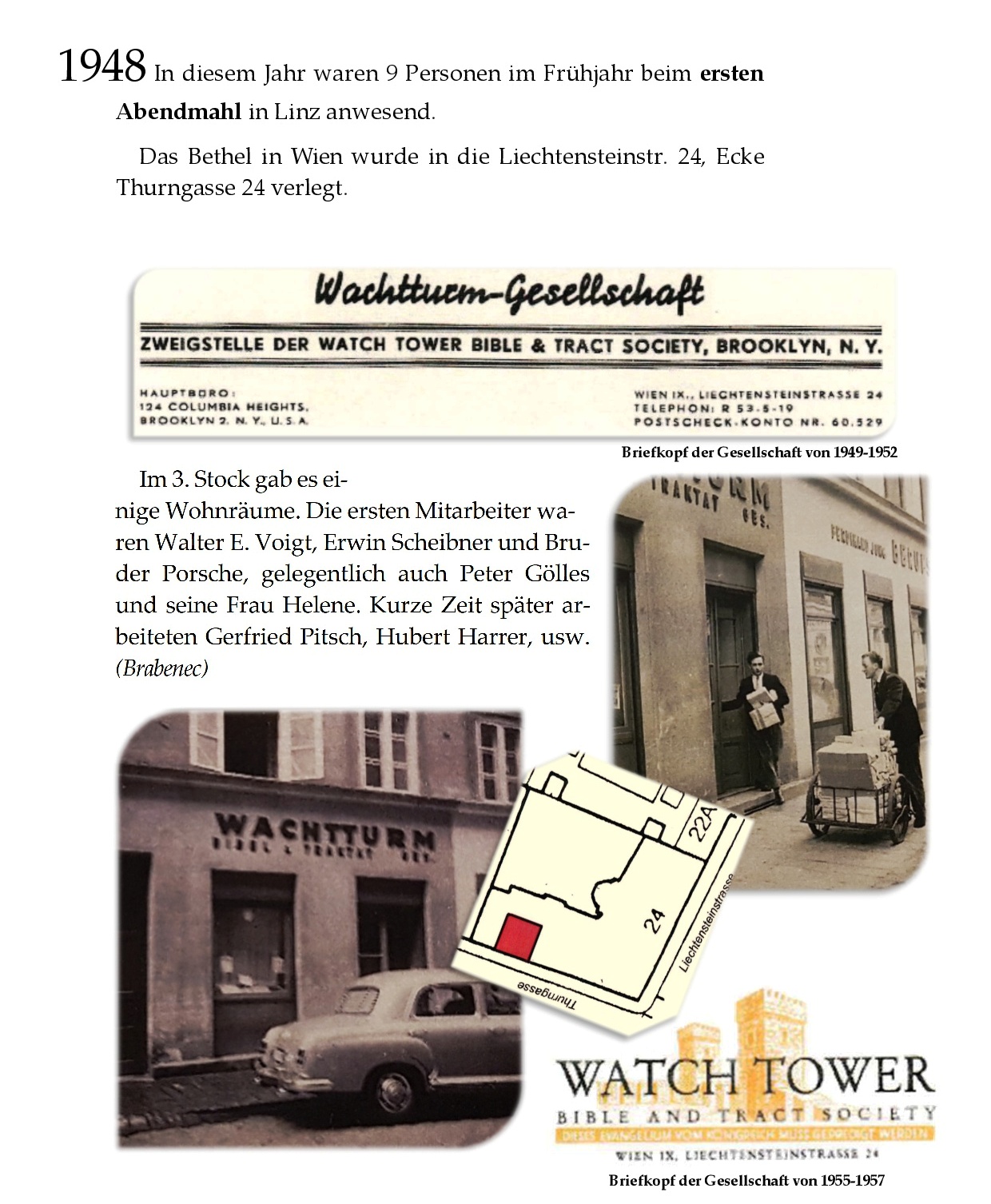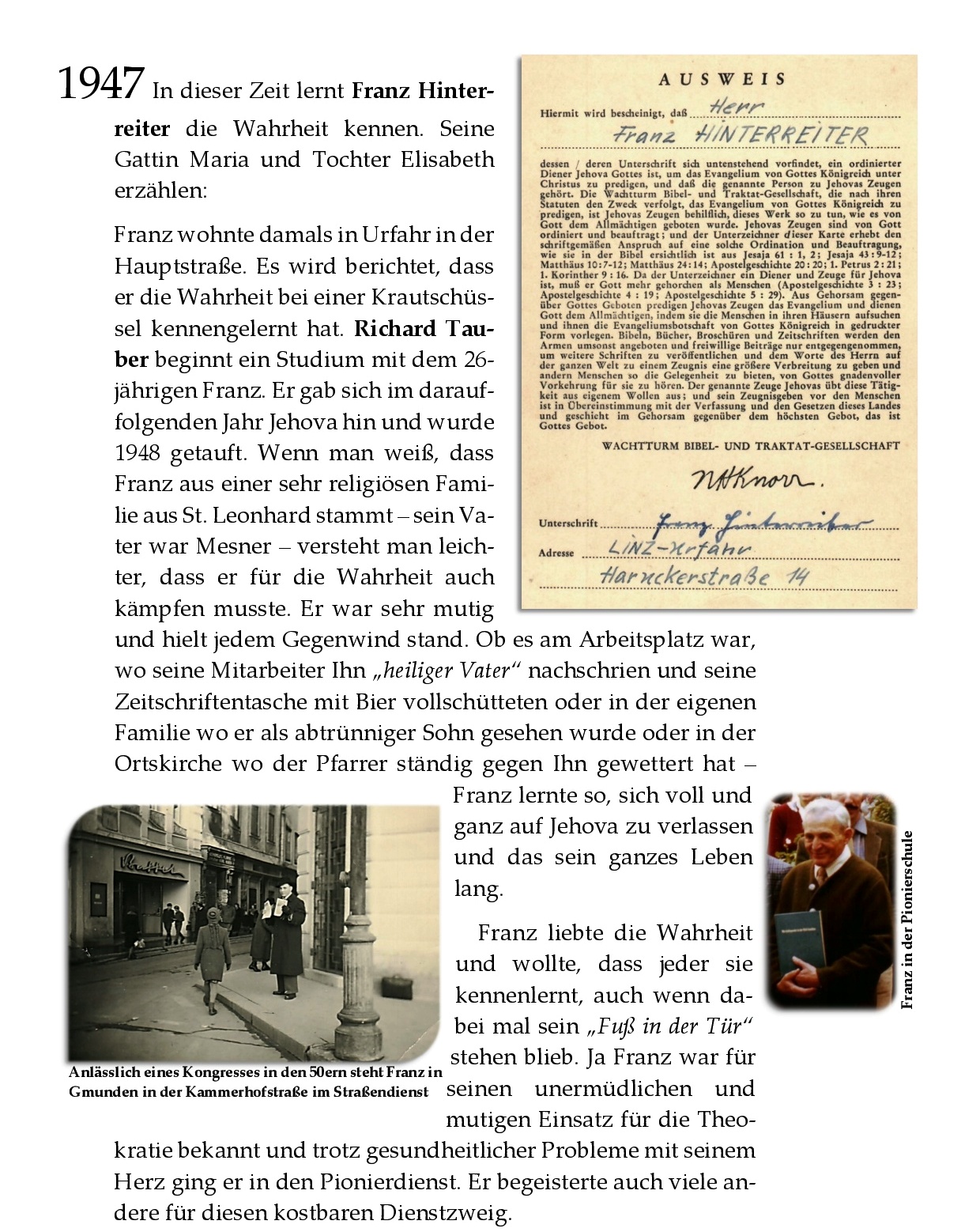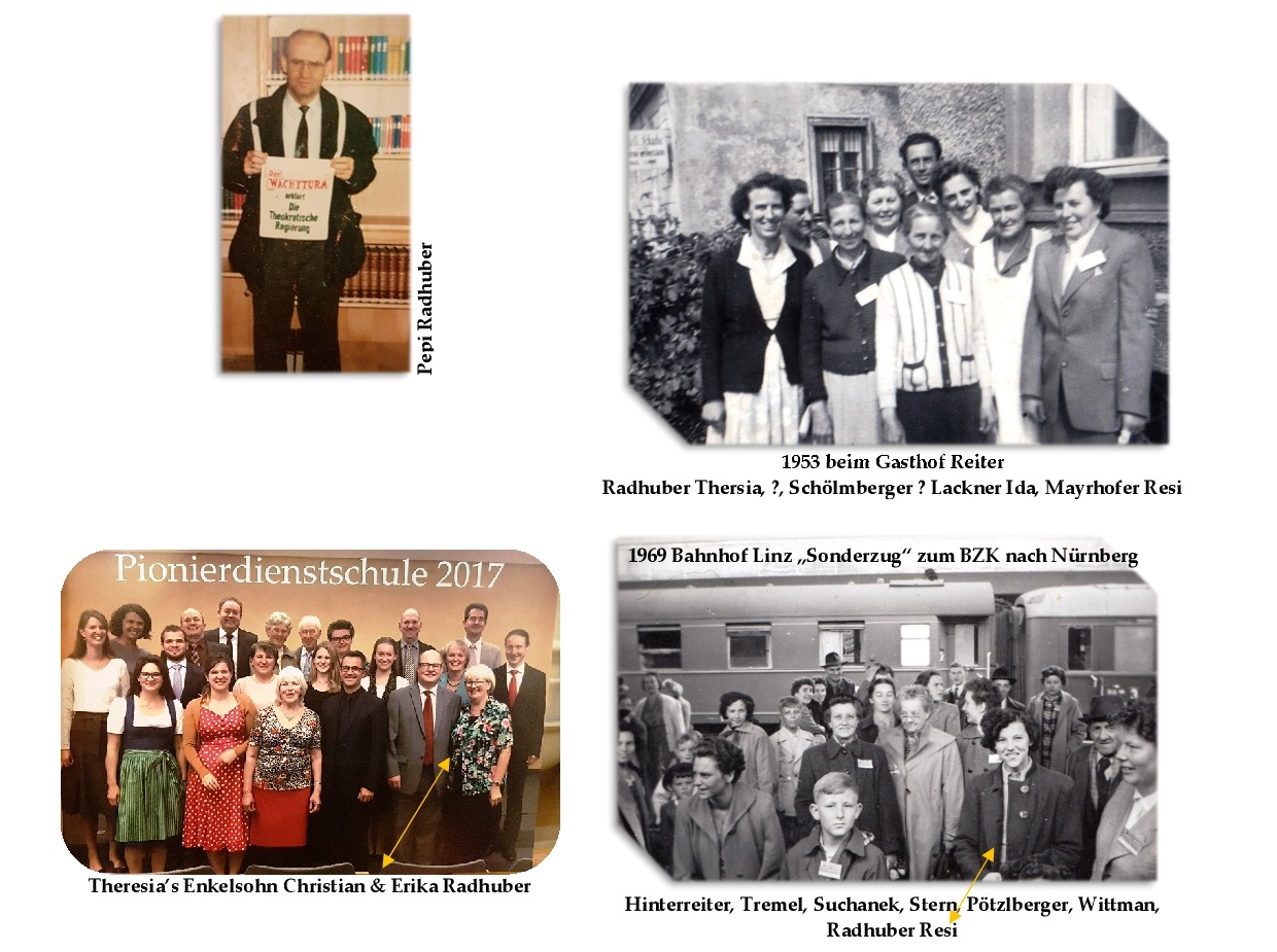 Überblick 1945-1949 Familien und besondere Ereignisse: Schuster, Filipp, Tauber, Hinterreiter, Mühleder, Staufer, Gesellschafts-Gründung, Erstes-Abendmahl-Linz, 1948 Bethel, Dienst-Gruppe-Bahnhof-1948, Liska, Pöschl, Gründung-Versammlung-Linz, Vortrag-Hotel-Reiter, Radhuber,
